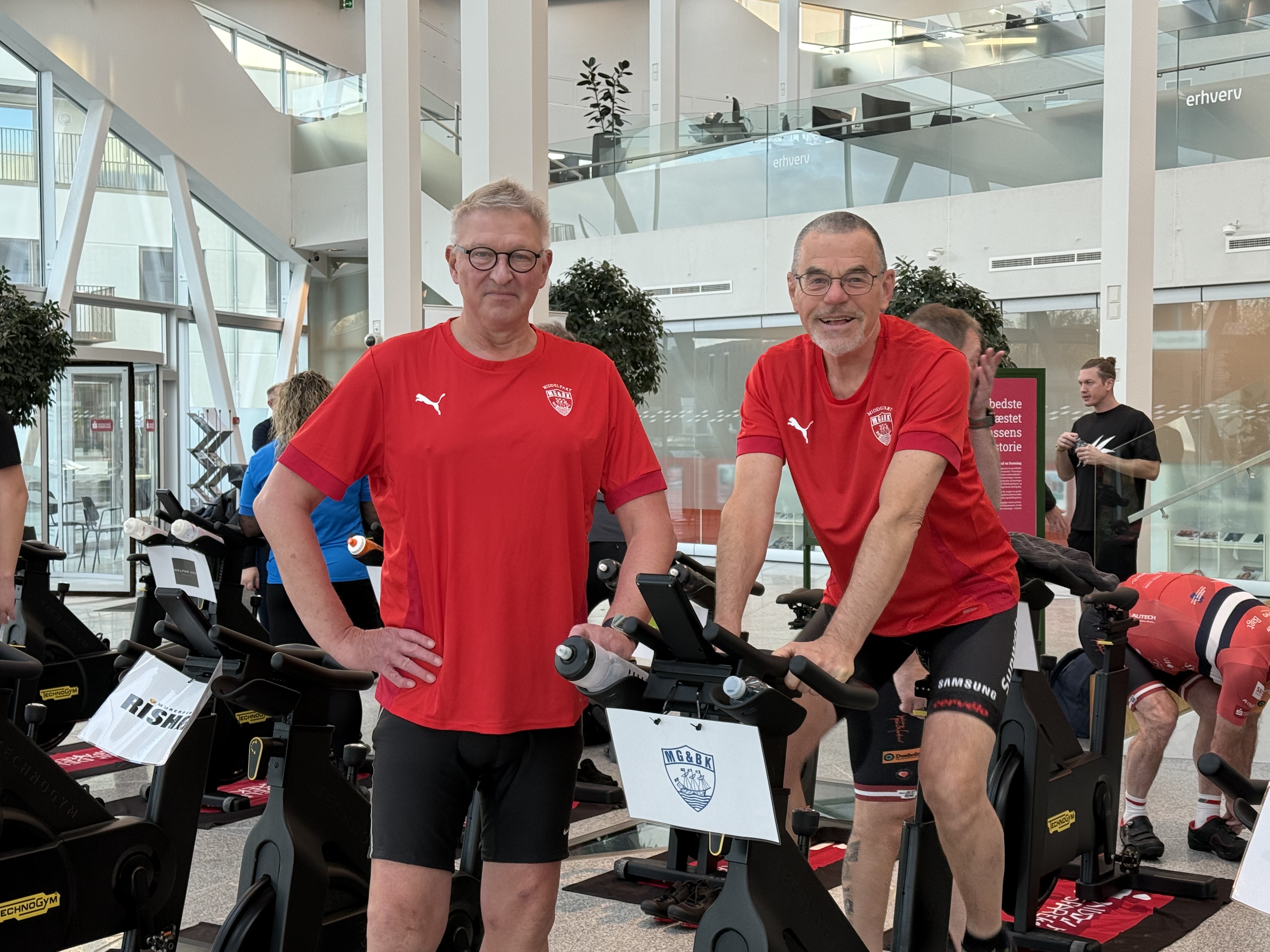 Per Henning og Preben Birk steg på cyklerne til spinning med kamp om, hvem der kører længst og derefter VIP arrangement med spisning og oplæg om Team Sammen om Sorgen der støtter børn og unge i sorg.